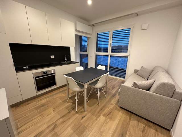 In palazzina di nuova realizzazione, posta in zona riservata e adiacente al confine Svizzero. Bilocale di 60 mq nuovo e completamente arredato. Soggiorno con cucina a vista, camera da letto e bagno. Posto auto esclusivo.. Possibilità cantina. Spese condominiali Euro 150 mensili comprensive di riscaldamento, raffrescamento, elettricità e Wi-Fi. Animali non ammessi. Libero subito. Altri bilocali disponibili nel complesso. CLASSE ENERGETICA: 23 kWh/m3 a