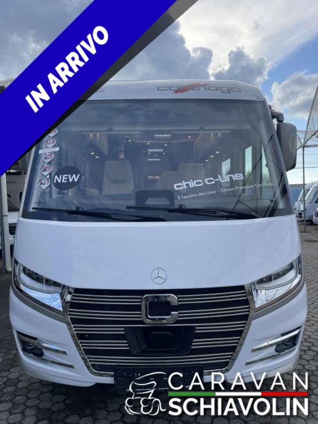 Aumento portata a 4.500 Kg ? 350,00Gradino elettrico porta accesso cabina guida ? 595,00Chiusura centralizzata sportelli esterni e garage ? 740,00Pacchetto prese aggiuntive ? 505,00Carthago-Smart ? 435,00Armadio TV zona notte ? 945,00Stile "CORTINA" ? 710,005° posto omologato con cintura ? 1.060,00Gruppo sedute trasformabile in posto letto ? 605,00Tappezzeria DAVOS ? 435,00PACCHETTO SUPER MERCEDES ? 14.365,00 (Climatizzatore automatico MB THERMOTRONIC, Tempomat - Cruise Control, Booster di ricarica, Serbatoio carburante da 92 litri, Assale anteriore con portata maggiorata, Volante in pelle con optional tasti multifunzione (con cambio con pomello del cambio in pelle), Strumento combinato con display a colori, Sensore pioggia, Freno di stazionamento elettrico, Sedili in cabina con regolazione dell?altezza e dell?inclinazione (avanti/indietro), Piedini di stazionamento posteriori a manovella per stabilizzare il veicolo da fermo, Specchietti in stile bus Carthago ?bestview? con illuminazione all?ingresso, regolabili e riscaldabili elettricamente, Porta cellula XL "premium two 2.0" (L. 63 cm) con dopppia chiusura finestra e zanzariera, Chiusura centralizzata porte cabina e cellula con funzione "coming home", Upgrade garage per scooter con feltro agugliato, reti portabagagli, sistema di ancoraggio, Aerazione toilette SOG tramite camino sul tetto, Truma DuoControl CS, Mobile bar di design con portabicchieri e set bicchieri sopra la cucina, Presa USB nel pensile sopra il letto posteriore, Predisposizione impianto fotovoltaico, Predisposizione impianto SAT, Predisposizione retrocamera (lente singola), Radio/Moniceiver Pioneer 6,8" con DAB+ predisposizione radio, antenna sul tetto, altoparlanti (4x), Sistema di retrocamera con lente singola, con monitor a colori da 7" su un lato del cruscotto)PACCHETTO TELAIO PLUS MERCEDES ? 4.895,00 (Cambio automatico 9G-TRONIC incl. funzione Hold, Variante motore 170 CV / 125 kW, Euro VI E, Cerchi in lega da 16 pollici (neri) con pneumatici all season, Climatizzatore automatico THERMOTRONIC)PACCHETTO ASSISTENZA ALLA GUIDA MERCEDES ? 905,00 (Sistema di assistenza attivo alla regolazione della distanza DISTRONIC, Assistente attivo di mantenimento corsia, Sistema di controllo pressione pneumatici)PACCHETTO POLAR ALDE ? 4.810,00 (Pannello isolante per parabrezza e finestrini cabina esterno, Doppi vetri isolanti nel finestrino laterale / finestra della porta in cabina, Riscaldamento ad acqua calda Alde, funzionamento a 230 V o a gas, con booster nella cabina, Scambiatore di calore Alde (utilizzo del calore del motore))PACCHETTO TV DA 32" ZONA GIORNO ? 1.910,00 (Sistema di estrazione TV nella panca laterale, Smart TV a LED 32") MOTORHOME TEDESCO TOP DI GAMMA CON NUOVO MOTORE MERCEDES EURO 6E FINAL, MECCANICA POTENTE DA 170 CV CON CAMBIO AUTOMATICO, TELAIO ALKO CON DOPPIO PAVIMENTO PASSANTE, LETTI GEMELLI POSTERIORI E DOPPIO ARMADIO A CARICO VERITCALE, RISCALDAMENTO AD ACQUA ALDE E 5 POSTI OMOLOGATI PER IL VIAGGIONOVITA' 2026 IN ARRIVO - FOTO DI REPERTORIO