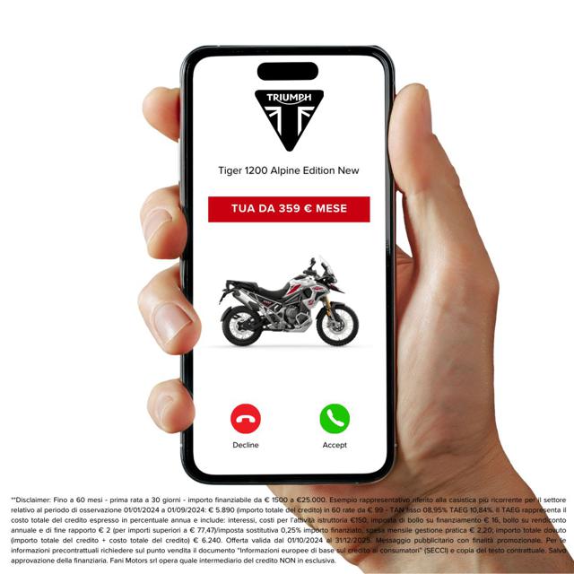 Moto disponibile in pronta consegna Finanziamento totale disponibile per rendere l?acquisto ancora più semplice. Consegna in tutta Italia, isole comprese. Eventuali accessori non inclusi nel prezzo indicato. Valutiamo la tua permuta! Inviaci foto e descrizione della tua moto usata per ricevere il miglior preventivo personalizzato. 50 anni di storia: Fani Motors, concessionaria ufficiale di 25 brand, dal 1975 al servizio della passione per le due ruote.