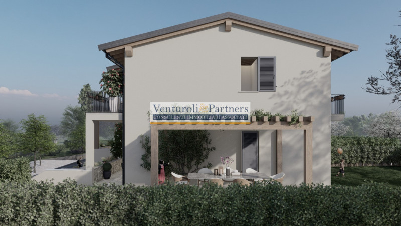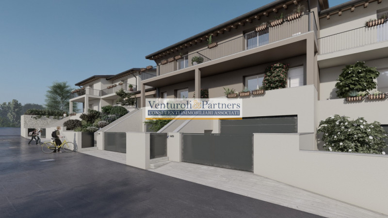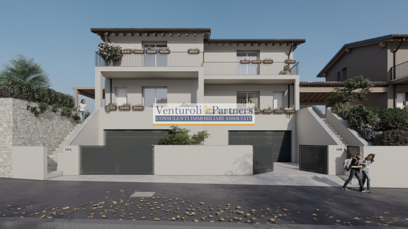 In vendita cinque magnifiche ville indipendenti, ciascuna con accessi privati sia carrai che pedonali. Questo progetto unico è situato su un terreno sopraelevato e dominante rispetto alla strada principale, offrendo una vista incantevole sul lago. Ogni unità abitativa si sviluppa su una superficie generosa di 140 mq ed è finemente progettata per garantire comfort e spazio. Gli ambienti sono ben distribuiti: ampia zona giorno con cucina separabile, tre camere da letto accoglienti dotate di terrazze private e un bagno per piano. Ulteriormente, ogni villa è equipaggiata con garage doppio seminterrato completo di lavanderia e basculante sezionale. Immersa in un contesto tranquillo lontano dal traffico cittadino, potrai goderti splendide passeggiate tra la natura circostante mentre sarai comunque a soli tre chilometri dal centro pulsante della località e dalle principali vie comunicative. Le caratteristiche costruttive delle ville sono all'avanguardia: pensate per l'efficienza energetica massima grazie agli impianti fotovoltaici, solare termico e pompe di calore. Il riscaldamento a pavimento insieme al sistema di raffrescamento ti garantiranno un comfort ottimale durante tutto l'anno. Lo stile architettonico tradizionale si fonde armoniosamente con il paesaggio locale creando così una residenza esclusiva senza tempo. --- annuncio pubblicato con GESTIONALEIMMOBILIARE.it