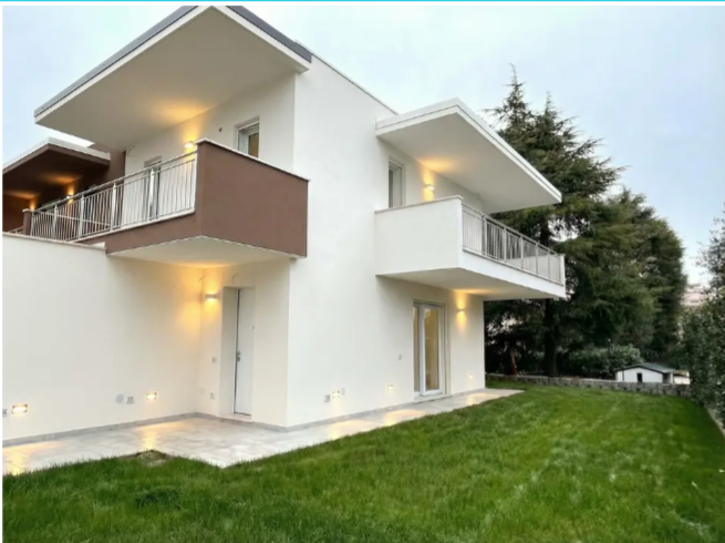 Proponiamo nuova villa di testa in avanzata fase di realizzazione, caratterizzata da architettura moderna, linee pulite e finiture di alto livello, realizzata secondo standard costruttivi di ultima generazione. Situata in posizione strategica, a pochi passi dal lungolago e comoda ai servizi, la proprietà si trova a breve distanza dal centro di Colombare di Sirmione e dai principali collegamenti. Il progetto, già in stato avanzato e con consegna prevista per la primavera 2026, comprende quattro ville con ingresso indipendente, ognuna con ampio garage e posto auto privato: -Due ville di testa con grande giardino angolare e possibilità di piscina privata -Due ville centrali con giardino fronte e retro Tutte le abitazioni vantano la stessa superficie interna e un design studiato per massimizzare la luminosità, grazie alle ampie vetrate che creano una perfetta connessione tra interno ed esterno. Interni e distribuzione La villa di testa proposta dispone di un ampio giardino su tre lati e offre la possibilità di realizzare una piscina privata. Un vialetto privato conduce all'ingresso, dove si apre una luminosa zona giorno con cucina a vista abitabile con ampia vetrata e accesso diretto al porticato coperto e al giardino, perfetti per vivere gli spazi esterni in totale relax. Completano il piano terra un grande bagno finestrato con doccia, un comodo ripostiglio e un ulteriore ripostiglio con lavatrice. Al piano superiore, una elegante scala con parapetto in vetro conduce alla zona notte composta da una camera matrimoniale con cabina armadio, una seconda camera doppia, un ampio bagno finestrato con doccia, e la possibilità di ricavare una terza cameretta o studio, secondo le esigenze dell'acquirente. Entrambe le camere godono di accesso a due splendide terrazze. Dotazioni e comfort La villa è dotata di garage fuori terra collegato direttamente all'interno dell'abitazione, oltre a un posto auto privato all'interno della proprietà. Realizzata in Classe Energetica A4 no gas, garantisce massima efficienza e risparmio energetico. Il capitolato di alto livello include pannelli fotovoltaici, pompa di calore, riscaldamento a pavimento, predisposizione impianto d'allarme e climatizzazione, serramenti a triplo vetro basso emissivo, illuminazione LED a basso consumo, pavimenti e rivestimenti in grandi formati, sanitari sospesi e rubinetterie di design. In questa fase è possibile personalizzare le finiture e gli interni, con la consulenza diretta dell'impresa per creare la casa perfetta secondo i propri gusti. Per maggiori informazioni o per fissare un appuntamento in cantiere, contattare la nostra agenzia. CLASSE ENERGETICA: 3,5 kWh/m3 a