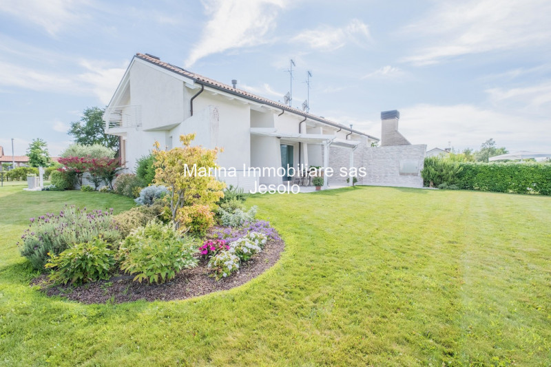 Nella rinomata zona residenziale del Parco Campana, tra il centro storico di Jesolo e il Lido, a soli 2 km dalla spiaggia, proponiamo in vendita splendida villa residenziale inserita in un ampio parco a verde dotato di piscina con solarium, campo da basket e area ristoro. L'immobile, caratterizzato da uno stile costruttivo contemporaneo è suddiviso su due livelli: al piano terra l'ingresso si apre verso un ampio e luminoso living di quasi 50 mq con cucina a vista e caminetto, disimpegno guardaroba e un bagno finestrato. Al piano superiore travato a vista, accessibile da una scala in stile moderno, troviamo tre camere matrimoniali, disimpegno con un'armadiatura/guararoba e un ampio bagno finestrato con vasca idromassaggio. Esternamente, connesso tramite ampie vetrate scorrevoli, l'abitazione è dotata di due zone living e pranzo, composte a sud da un ampio angolo living nel porticato con sedute per il relax all'aria aperta; mentre nella parte adiacente alla cucina è presente un'ampia area ristoro coperta da una struttura metallica dotata di tende retrattili e un parete in pietra con caminetto accessoriato, il tutto comodo per pranzi e cene all'aperto. Completano l'immobile impianto di riscaldamento autonomo a pavimento, impianto di condizionamento multisplit, serramenti in legno con vetrocamera doppia, zanzariere, tendaggi solari, impianto d'allarme, impianto di irrigazione per il parco, parziale arredamento tutto su misura e molto alto. --- annuncio pubblicato con GESTIONALEIMMOBILIARE.it